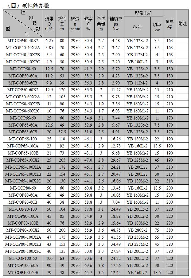 MT-COP系列磁力泵是在AY型離心油泵的基礎(chǔ)上加磁傳動裝置而成,其性能參數(shù)和安裝尺寸與同型號的AY泵相同